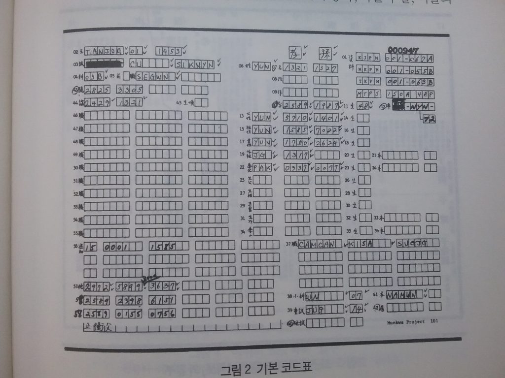 와그너-송준호 프로젝트의 코드표다.(337) 이걸 표기하고 펀칭하면서 무슨 생각들을 했을까.