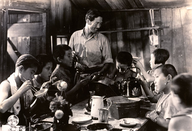 한국영화데이터베이스. 최인규의 영화 「家なき天使(집없는 천사)」의 한 장면. 식민지 계몽 남성이 정점에 위치하고 있다.