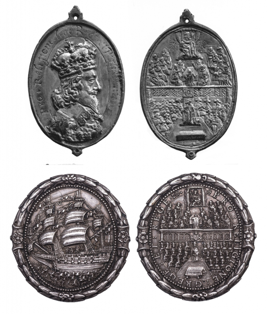 길고 지루할 듯 이어져 가는 EKa의 논의가 마침내 1642년 찰스 1세에 대한 의회의 선언과 이를 전후하여 주조된 기념표장들에 대한 설명으로 이어지는 순간, 읽는 나도 숨을 멈추게 된다. 이토록 정교하고 아름다운 이야기는 몇 개의 기념표장의 도상에 대한 설명으로 아름답게 마무리된다. 우리는 흔히 왕을 처형한 역사를 1793년 프랑스의 루이 16세의 처형으로 생각하지만, EKa에 따르면 이때는 왕의 자연적 신체 만이 아니라 정치적 신체 즉, 군주제도 처형된 사건이다. 이보다 140여년이나 이른 시기에 연합왕국은 찰스 스튜어트를 처형하면서도 정치적 신체를 존속시켰다. 물론 찰스 1세의 처형 직후, 크롬웰이 정권을 잡은 짧은 공화국 시기가 존재한다. 약 10년 정도, 이 시기를 역사에서는 Commonwealth라고 부른다. 그리고 1660년 찰스 2세가 복위한 후에, 잉글랜드 역사에서는 1949년부터 찰스 2세가 왕인 것으로 기록하여, 공위기간을 인정하지 않는다. 그 다음 찰스는 지금의 찰스 3세라는 점이 흥미롭다.