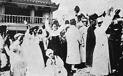종로 보신각 앞의 삼일운동 군중 사진. 이들 각자는 어떤 조선인일까? 이들 한 사람, 한 사람은 어떤 삶의 궤적을 지나 이 자리에 선 것일까? 사진기와 사진사를 바라보는 앉아있는 저 여인은?